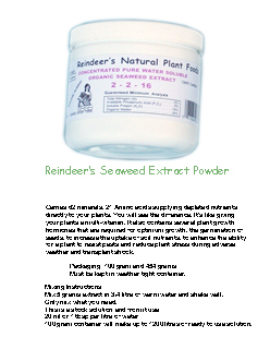 Mix 5 grams Soluble Seaweed Extract in ¾ liter warm water shake well fill with cold water.