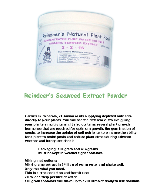 Mix 5 grams Soluble Seaweed Extract in ¾ liter warm water shake well fill with cold water.